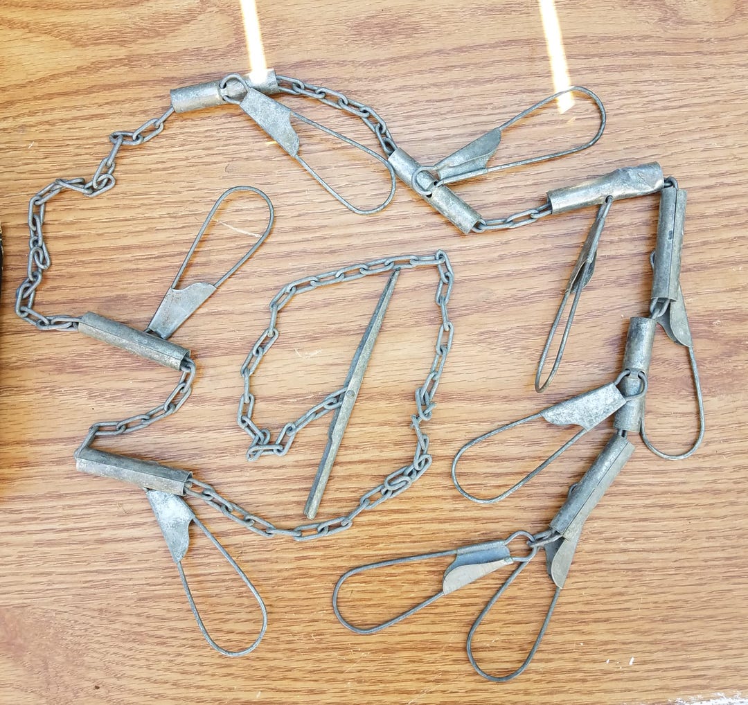 Vintage Metal Chain fishing fish stringer 8 hook clamp northern pike ...