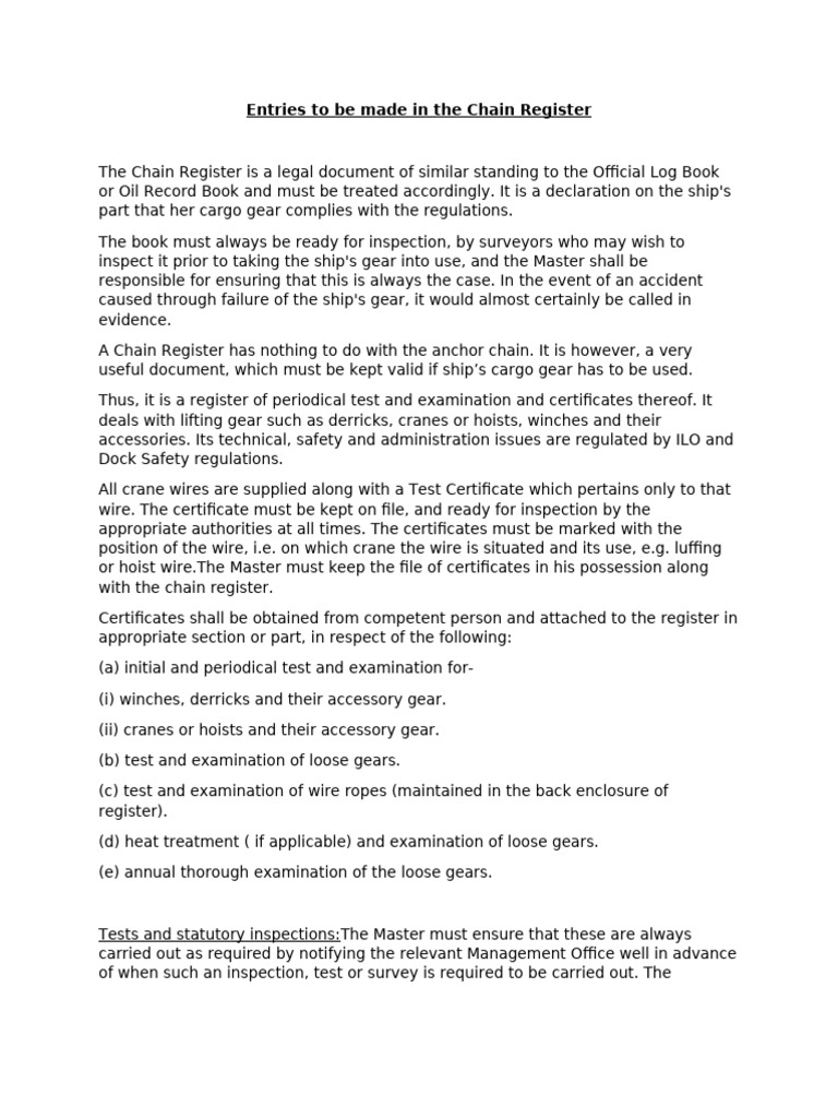 What is Chain Register and its contents ? - MarineGyaan