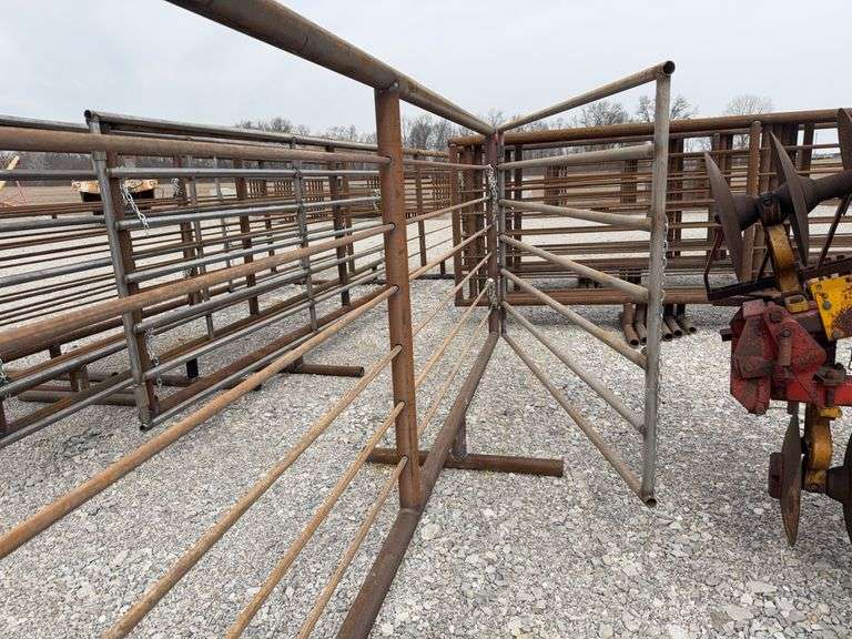 24’ Freestanding Corral Panel W/ 8 Foot Gate, Chain Fasteners, 2 7/8 ...