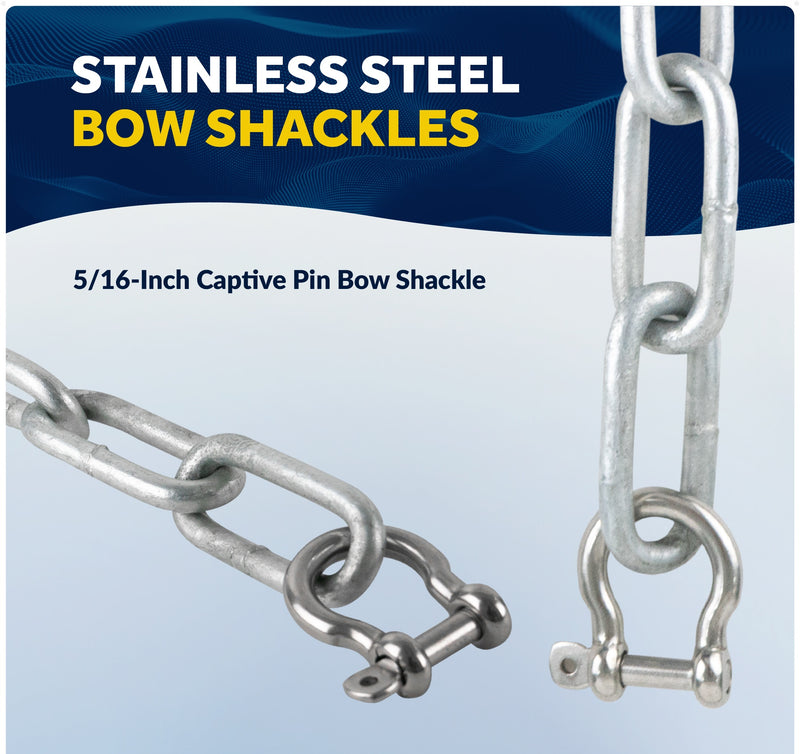 5/16" Anchor Chain with 2 Shackles, Marine-Grade Galvanized Steel ...