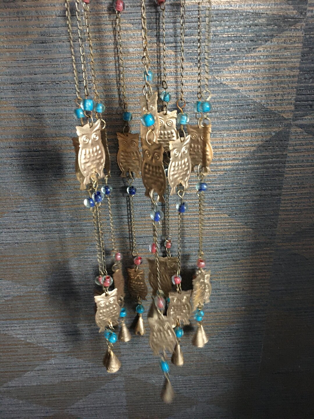 Long Owls, Bells Hanging, Window Wall Chained Decoration With Glass ...