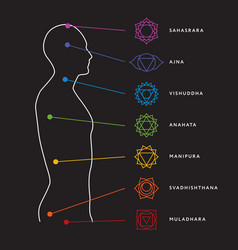 Chakra system of human body chart. Seven chakra symbols. Location ...