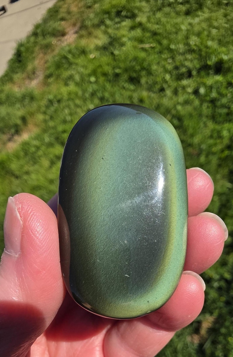 Rainbow Obsidian, Flashes Green / Yellow/ Gold Palmstone Healing, Root ...