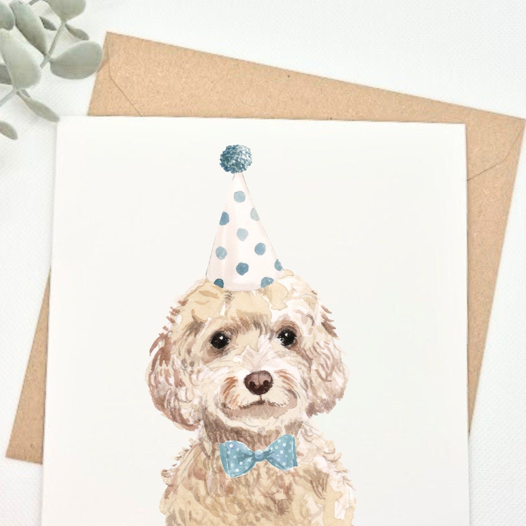 Champagne Cockapoo Square Card, Birthday Card, Cockapoo Card, Birthday ...