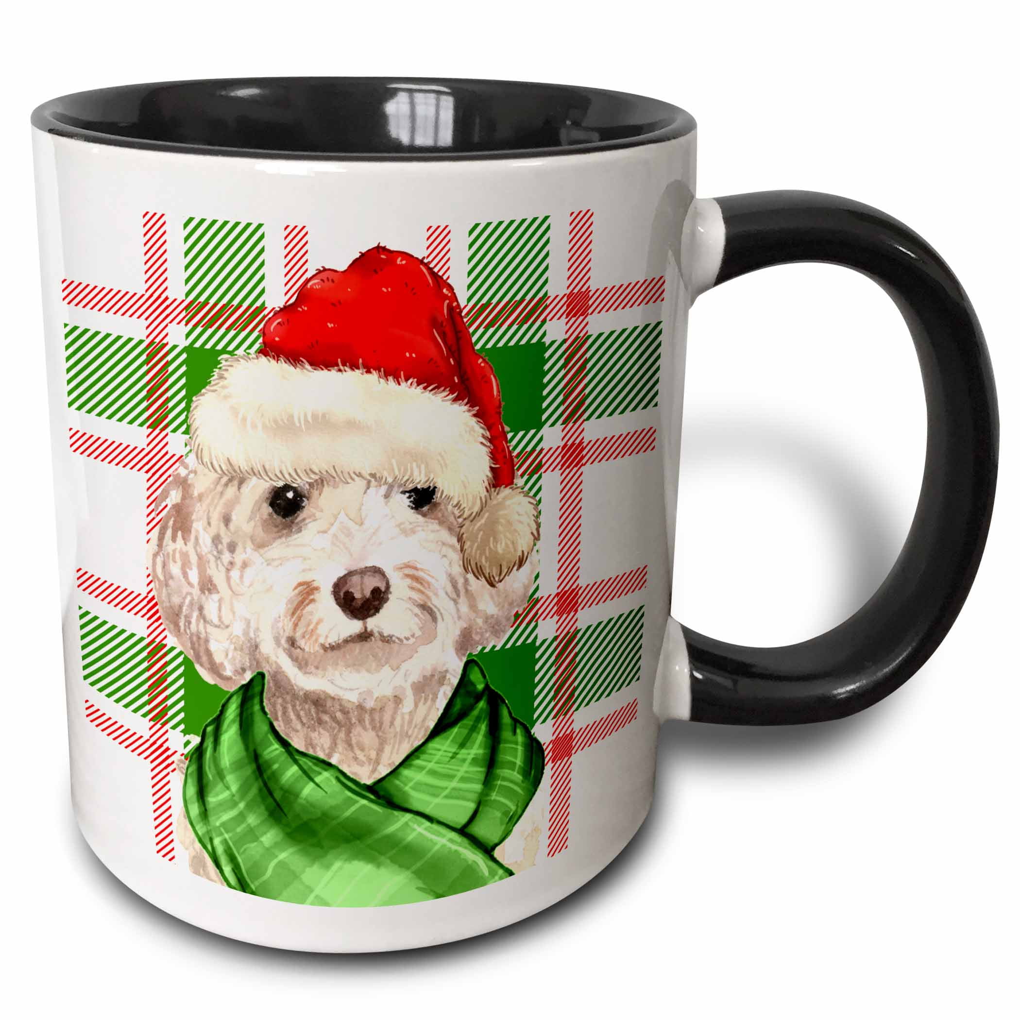 3drose, Champagne Cockapoo Christmas Dog with Red and Green Holiday ...