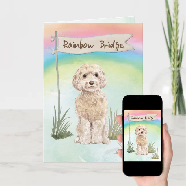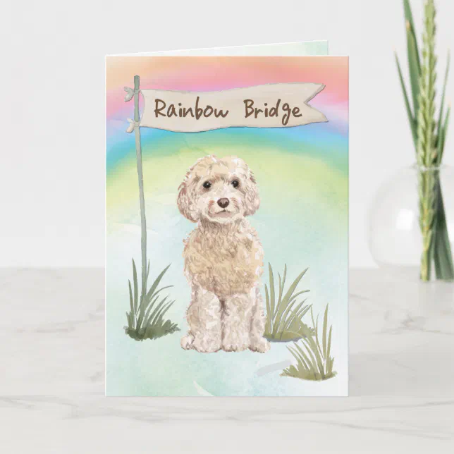 Champagne Cockapoo Pet Sympathy Over Rainbow Card | Zazzle