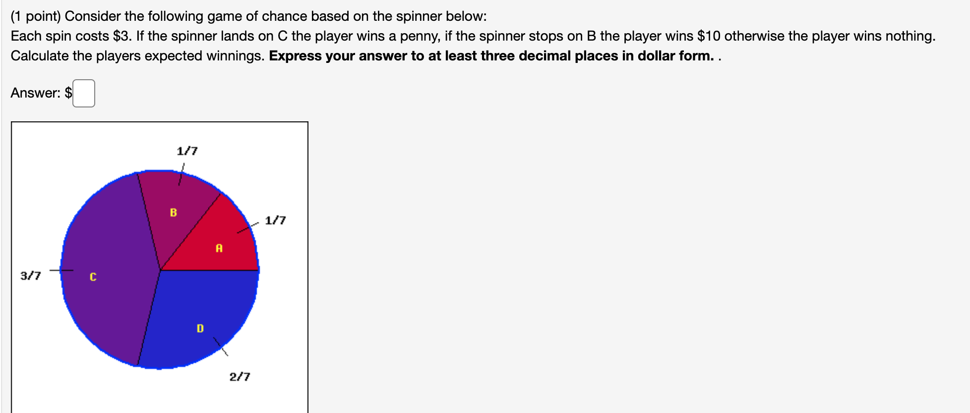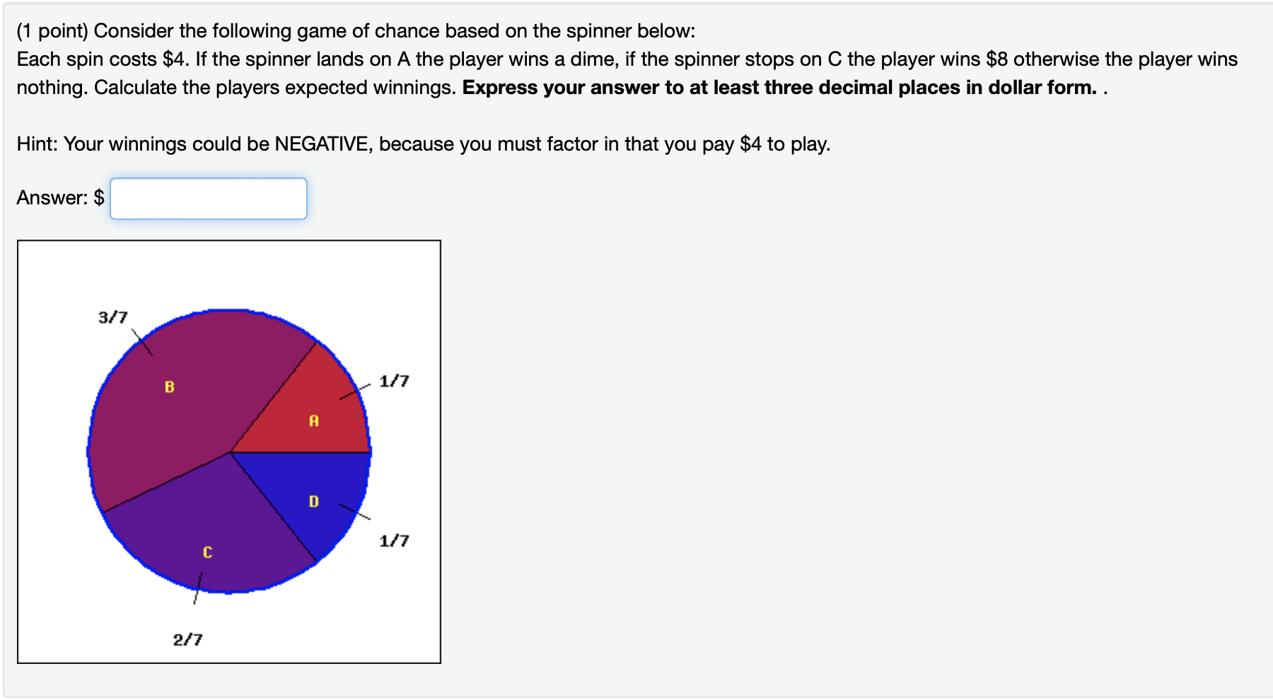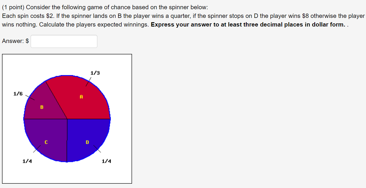 Solved (1 point) Consider the following game of chance based | Chegg.com