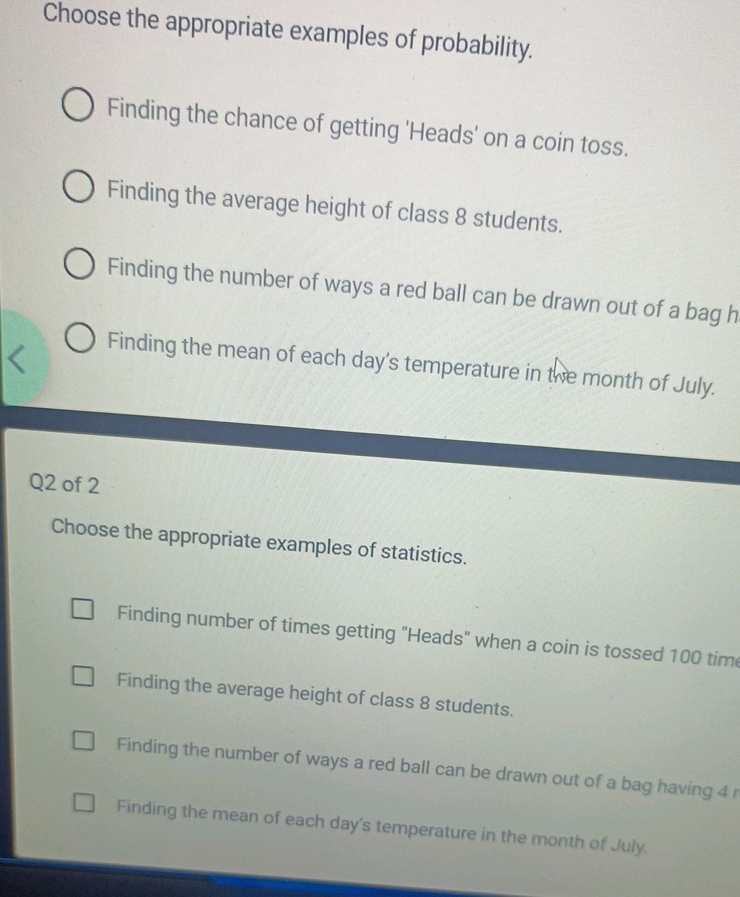 Chance Probability Quiz