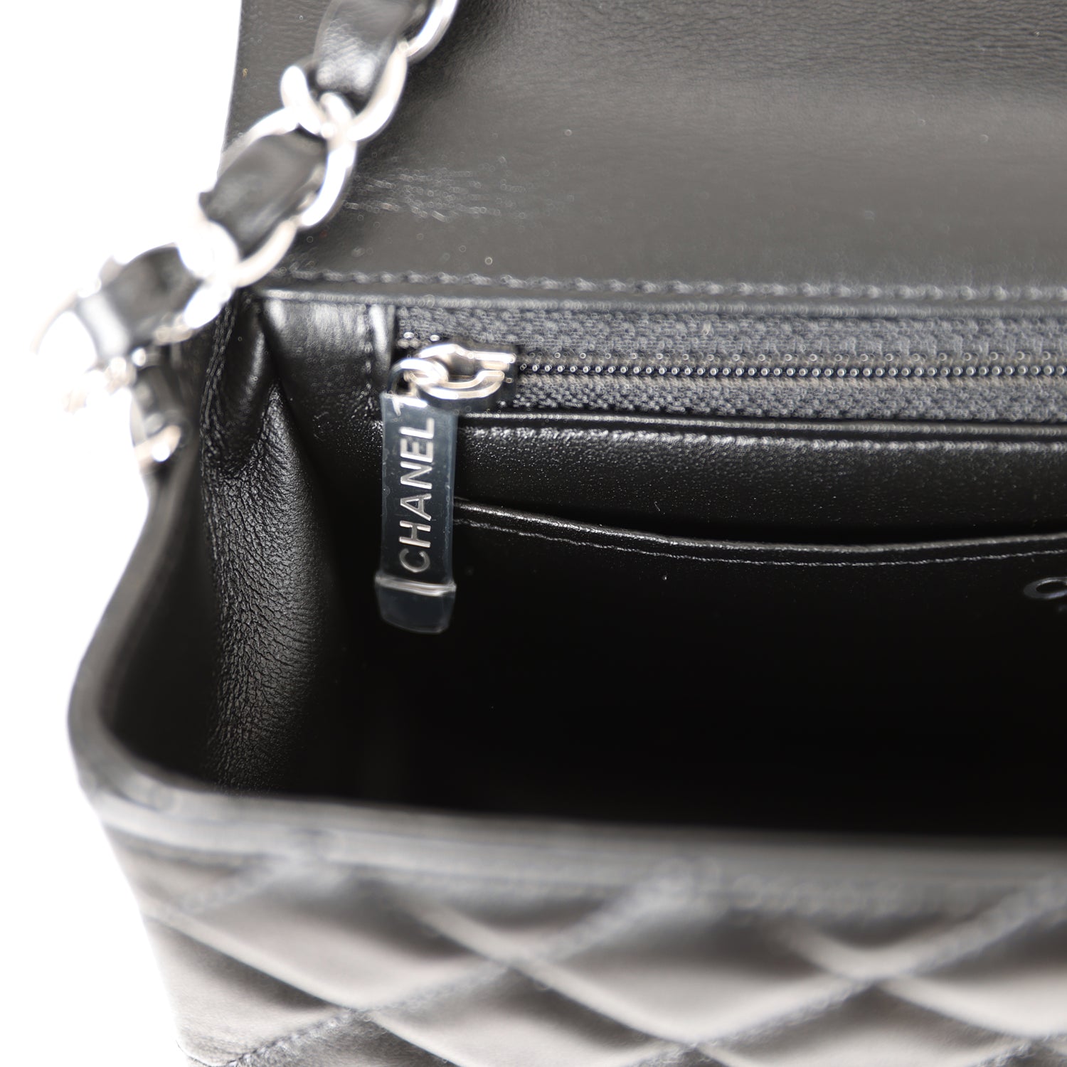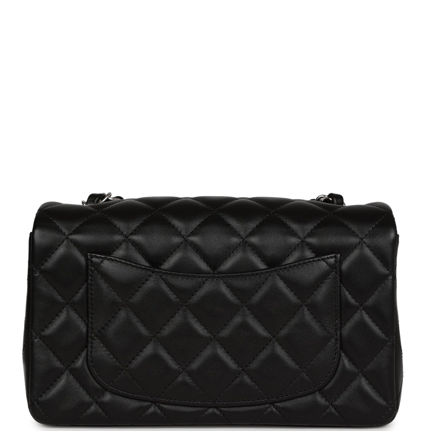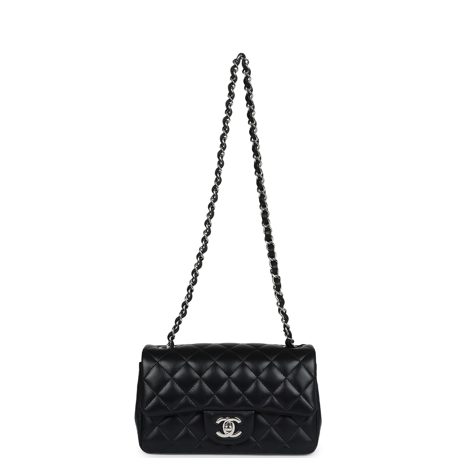 Chanel Mini Classic Rectangular Flap Bag Black Lambskin Silver Hardwar