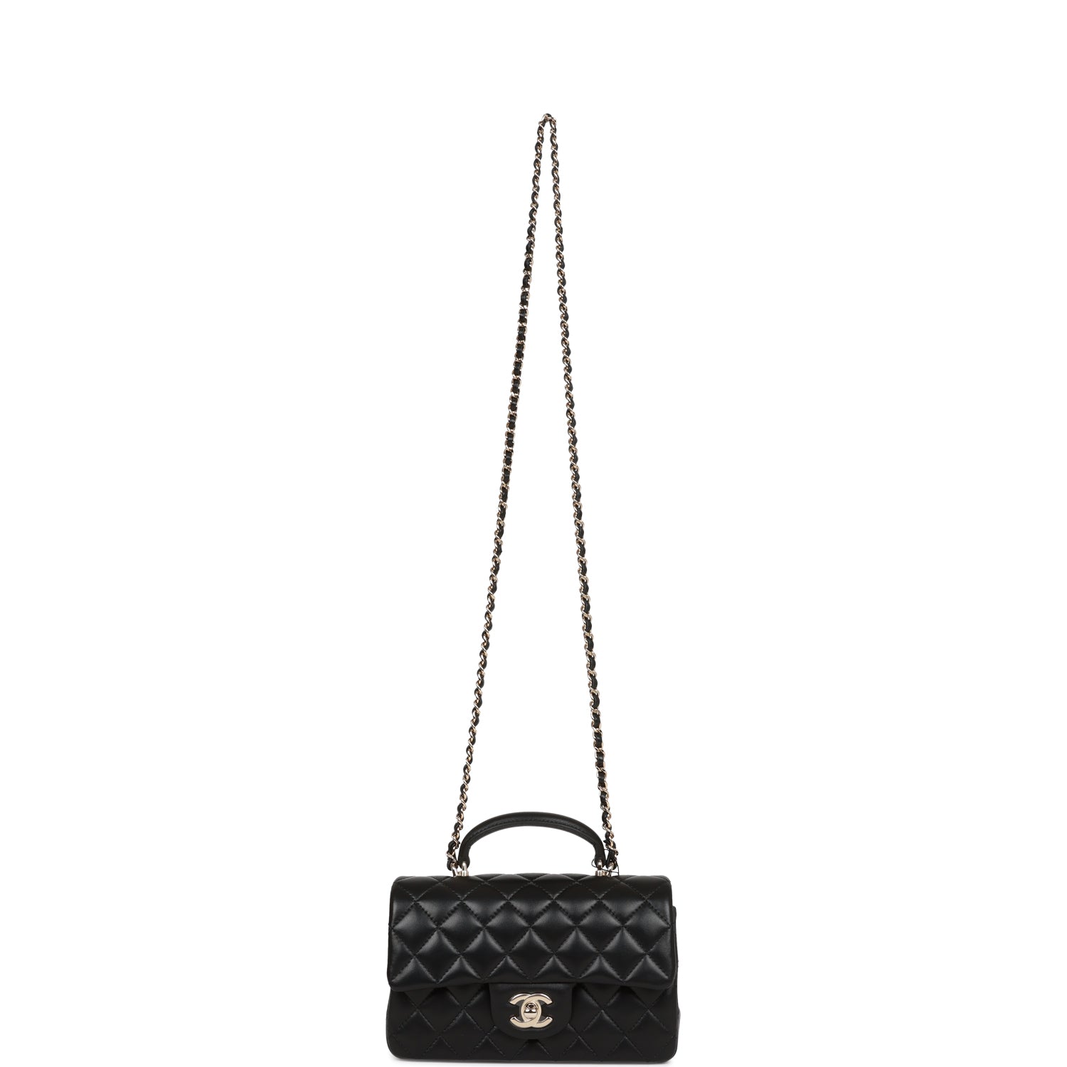 Chanel Mini Rectangular Flap Bag with Top Handle Black Lambskin Light ...