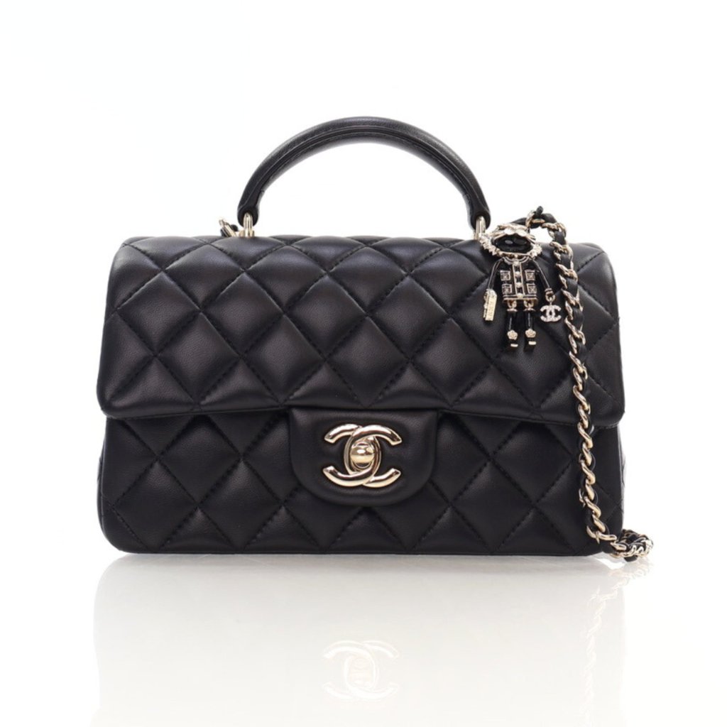 Chanel Mini Black Lambskin Rectangular Top Handle Classic Flap Bag ...