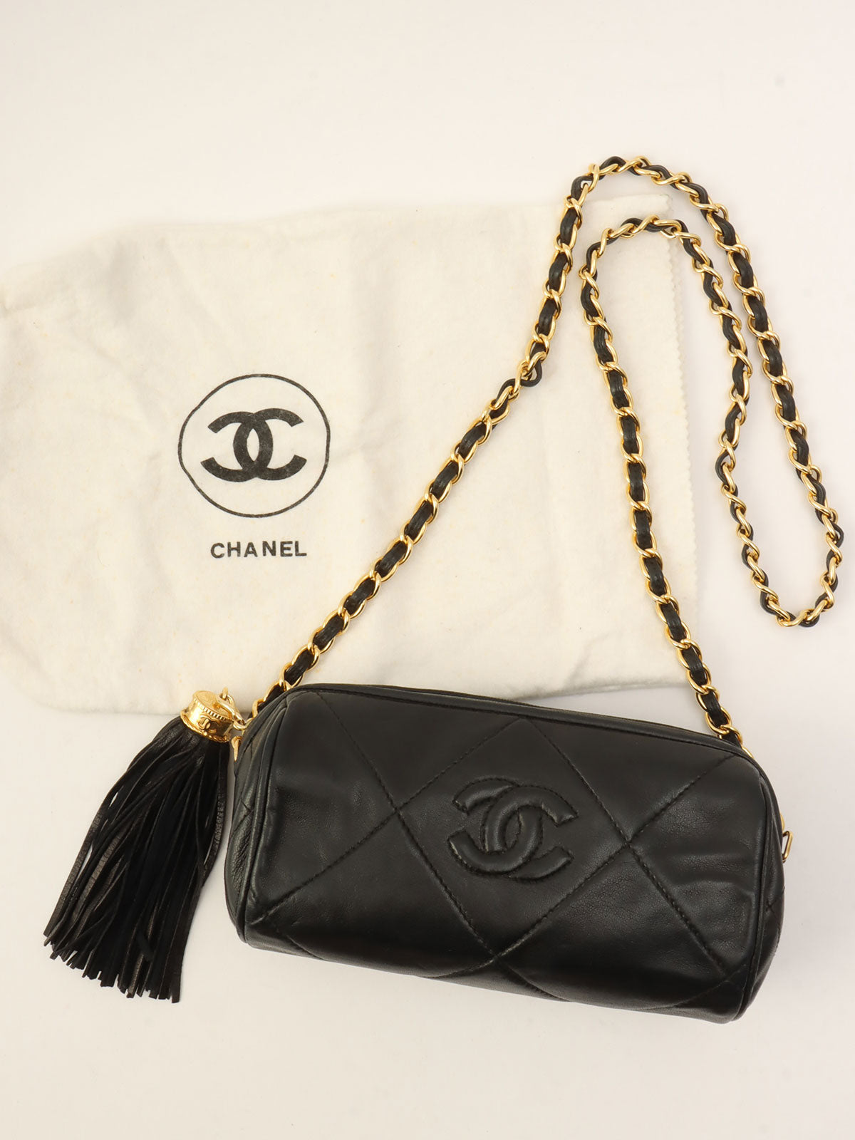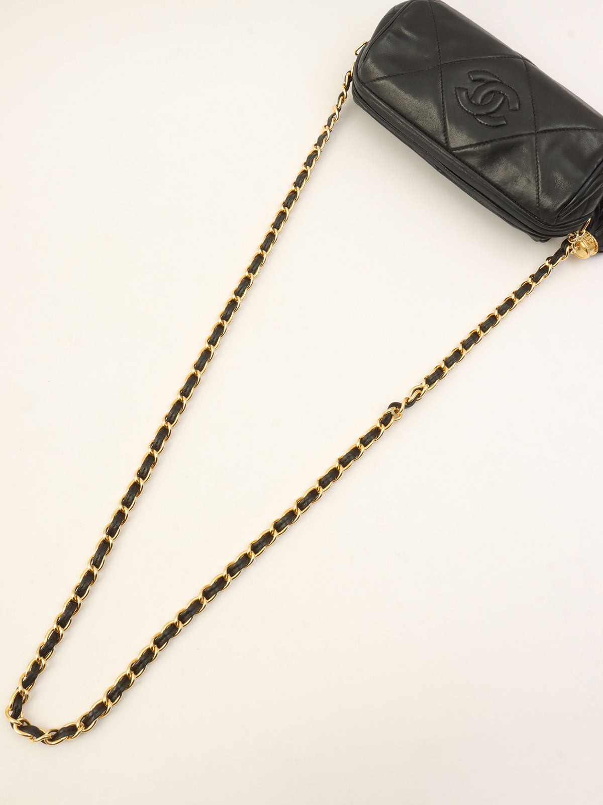 Chanel Mini Zip-Around Box Pouch in Black Chocolate Bar Quilted Patent ...