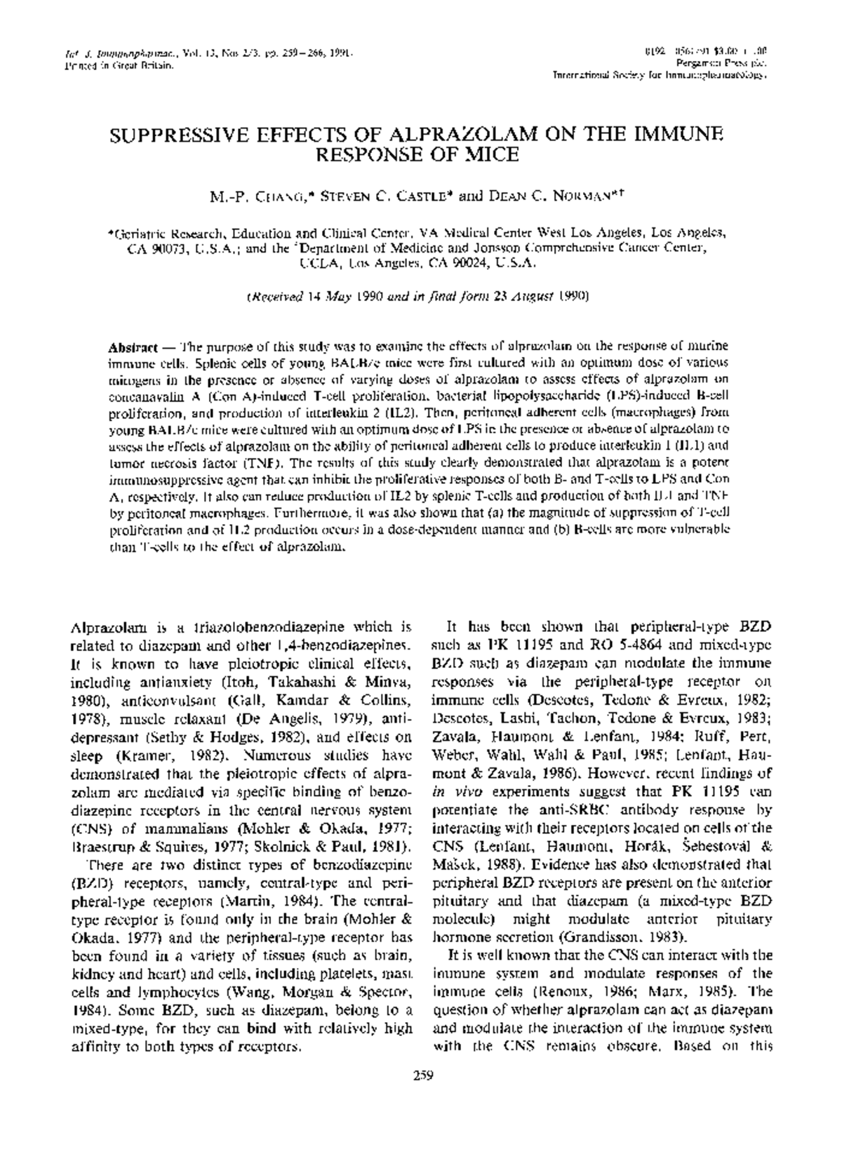 Chang 1991 - note - Int. ,L lmmunopharrnac., Vol. 13, Nos 2/3, pp. 259 ...