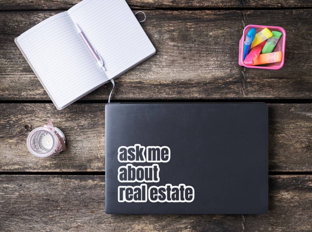 Ask Me About Real Estate Laptop Sticker, Real Estate Agent Kiss-cut ...