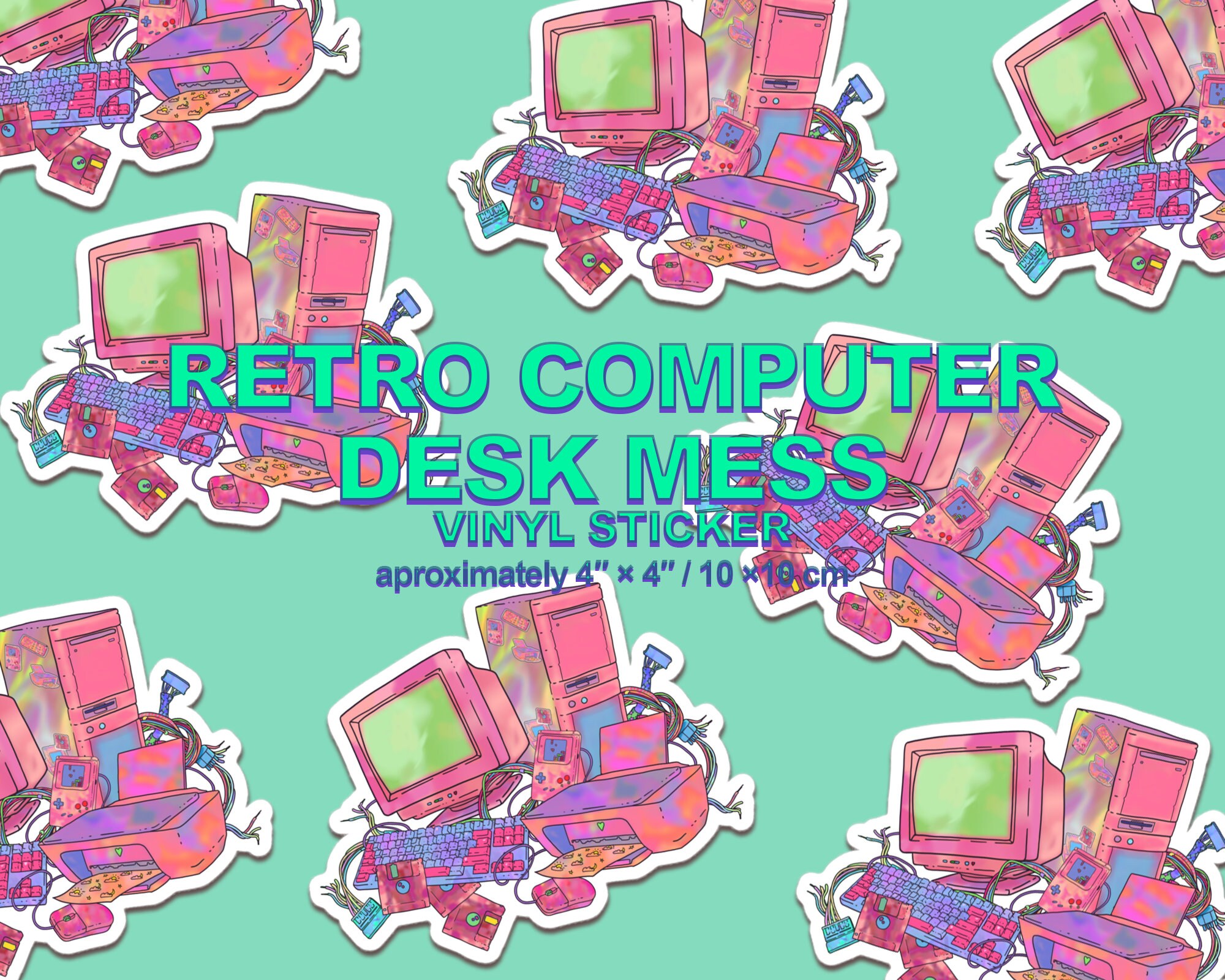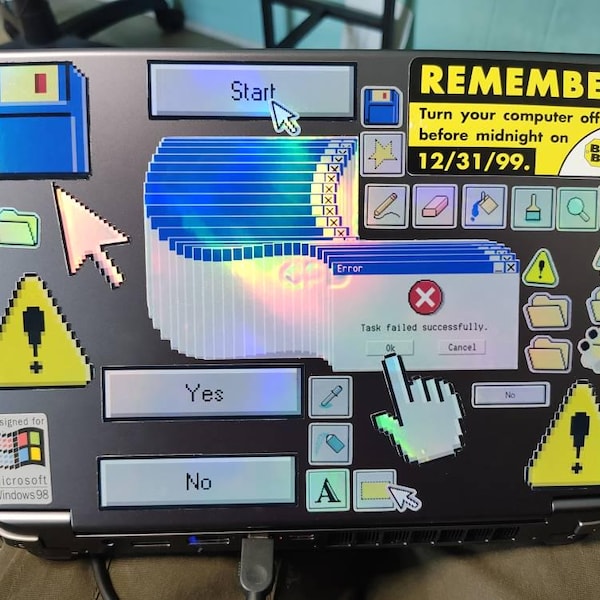 Retro Computer Desk Sticker. Cyberpunk, Hacker, Office Themed. - Etsy