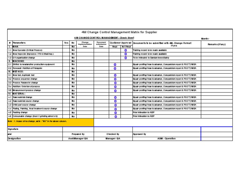 4M Change Control Management Matrix For Supplier: Month | PDF ...