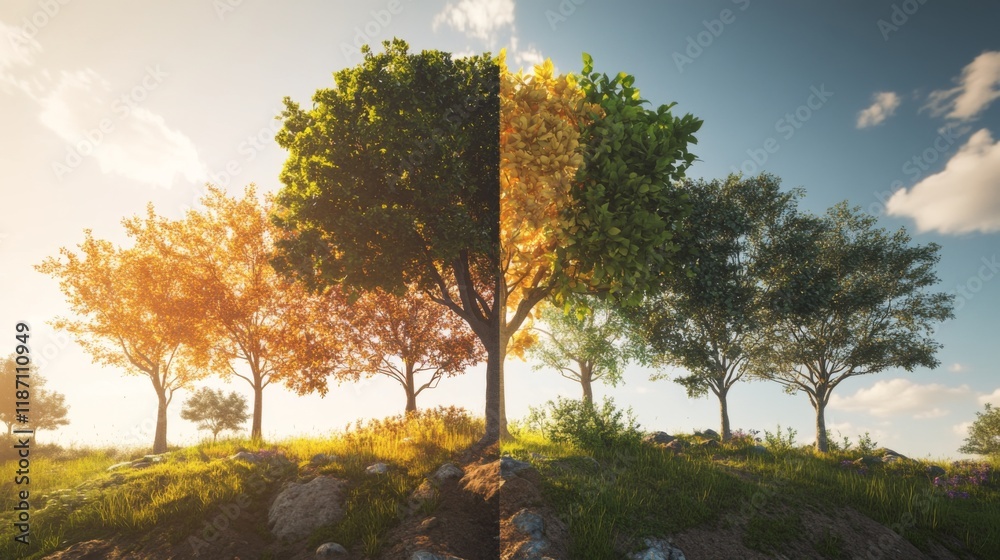 A time-lapse-inspired image showing different growth stages of a tree ...