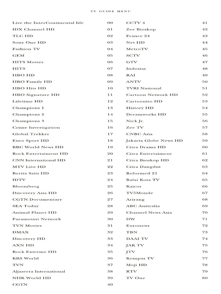 80 Channels Tv Channel Guide | PDF