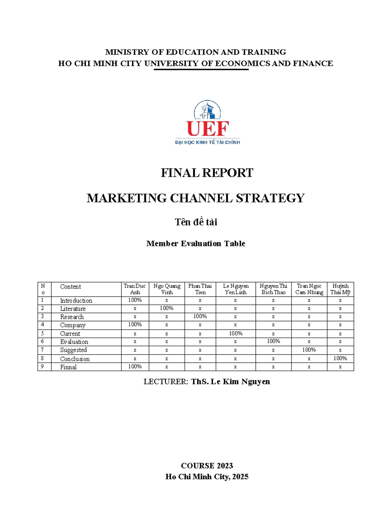 Marketing Channel Strategy Report - Course 2023 - Studocu