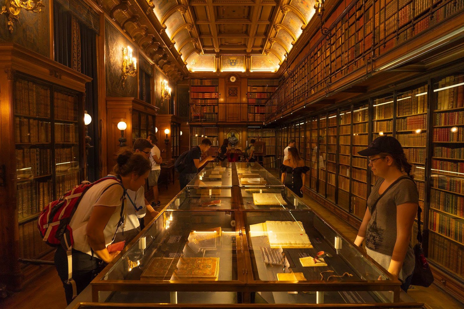 Chantilly France ,Tourists Visiting in Library Looking at Old Books on ...