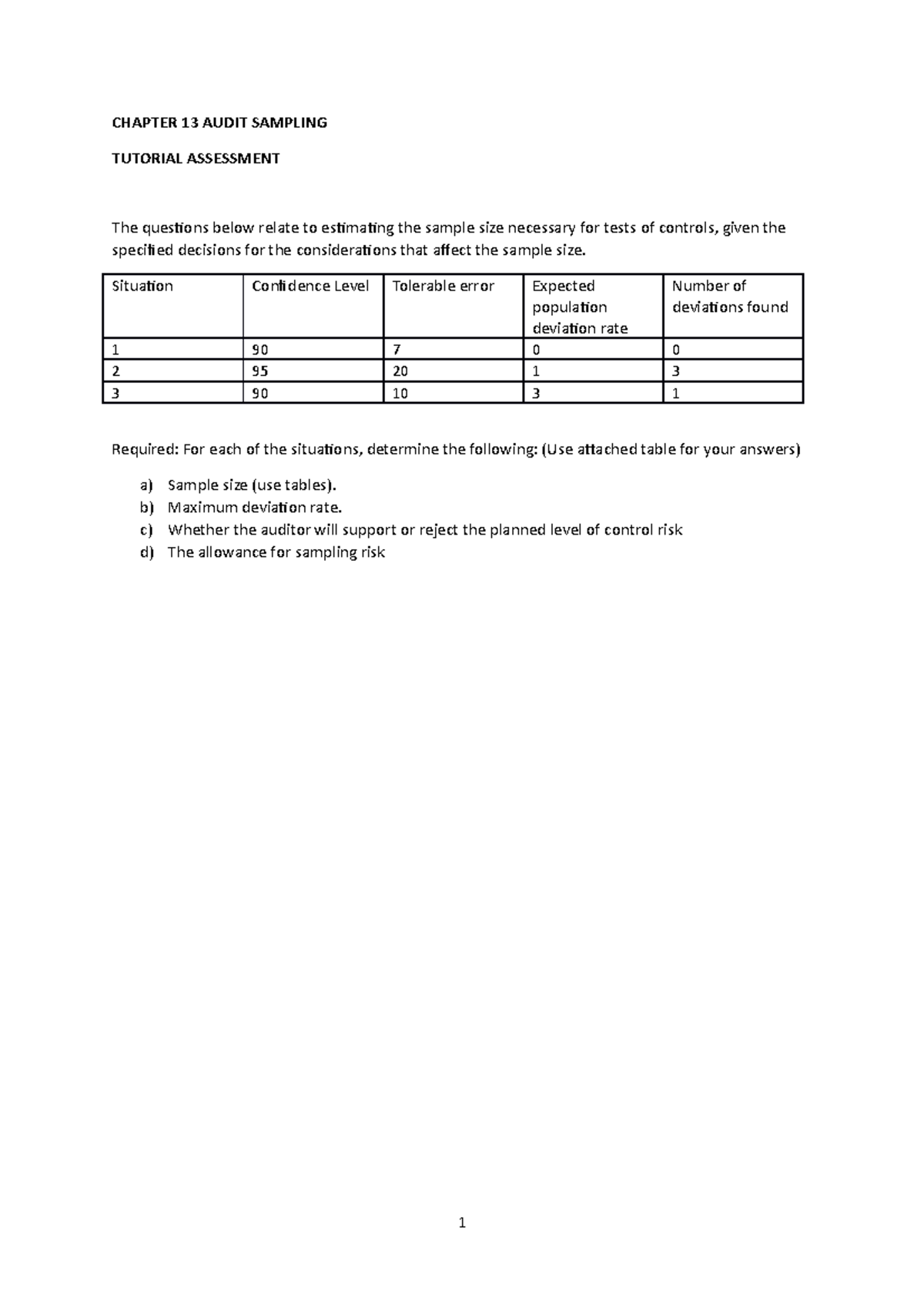 Chapter 13 assessment quetion - CHAPTER 13 AUDIT SAMPLING TUTORIAL ...