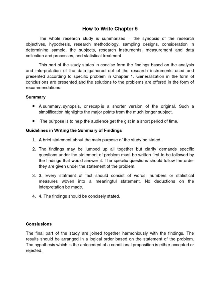 How To Write Chapter 5 of A Thesis Basic Guide | PDF
