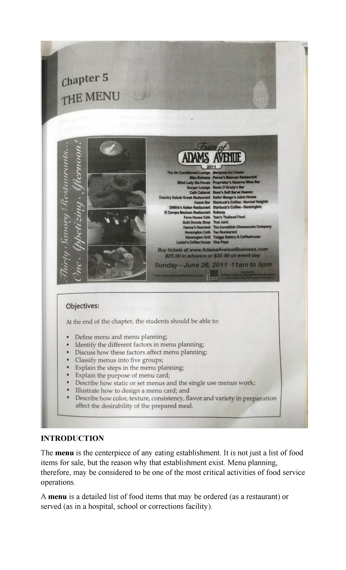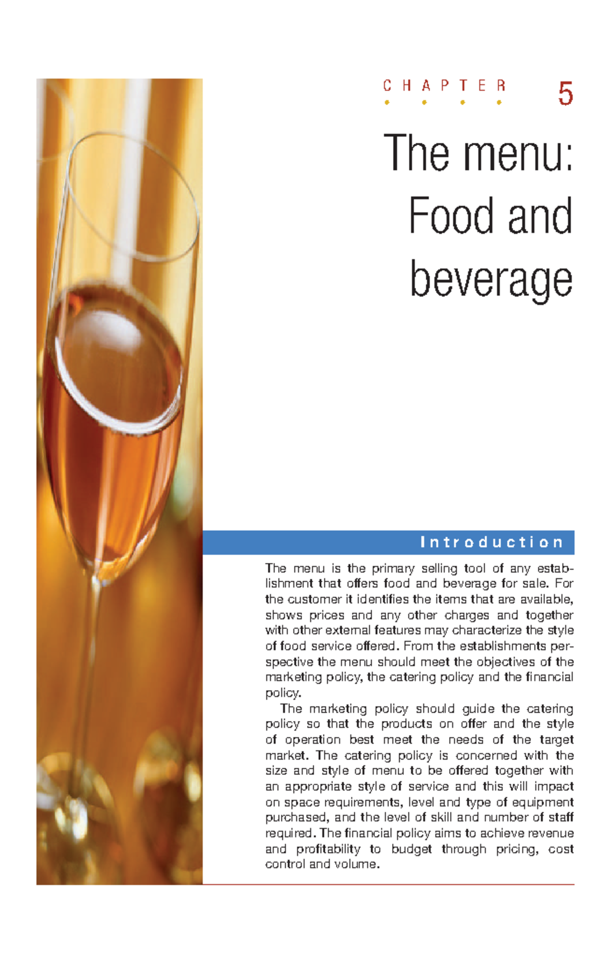 Chapter 5 - The menu - Food and Beverage - I n t r o d u c t i o n The ...