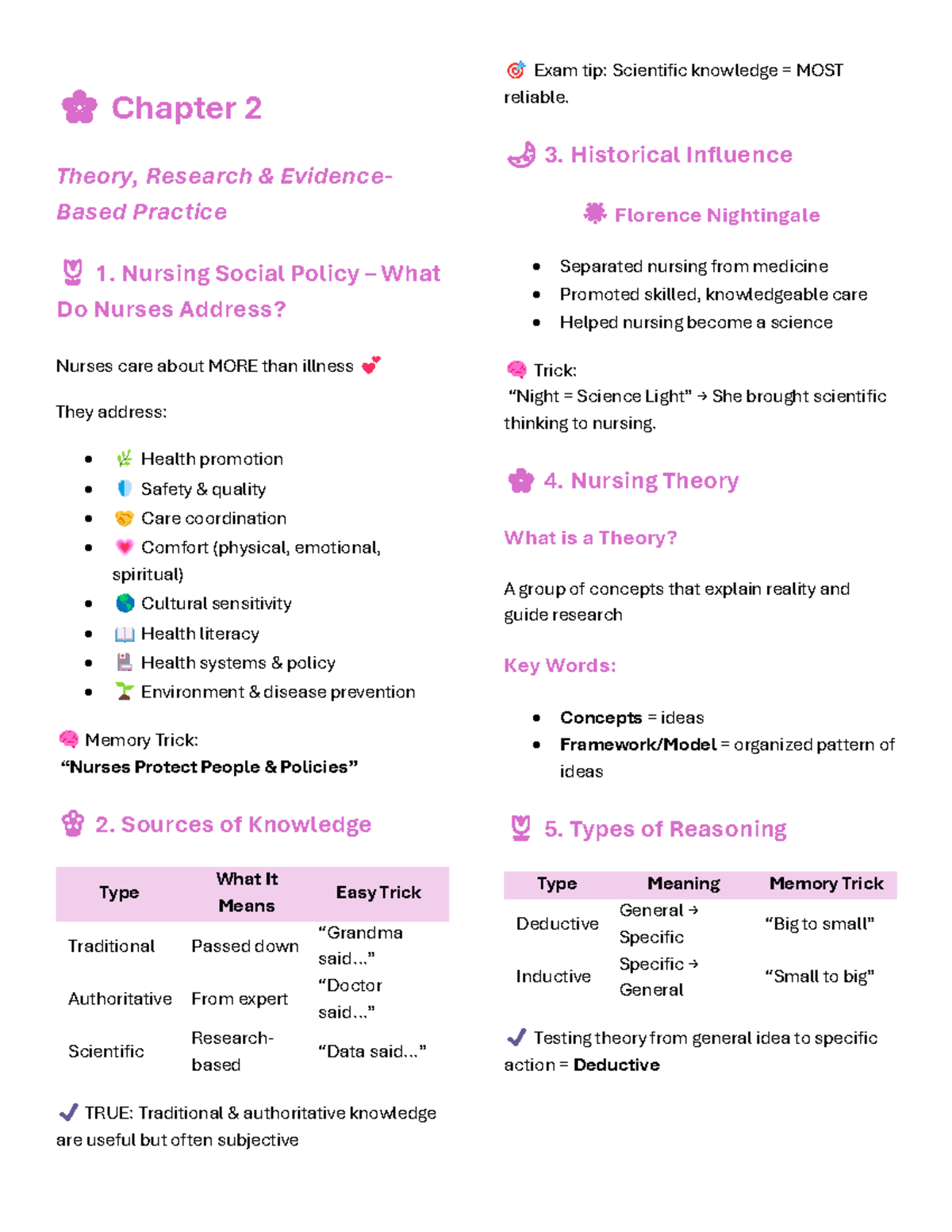 Foundations - Chapter 2: Nursing Theory & Research Evidence-Based ...