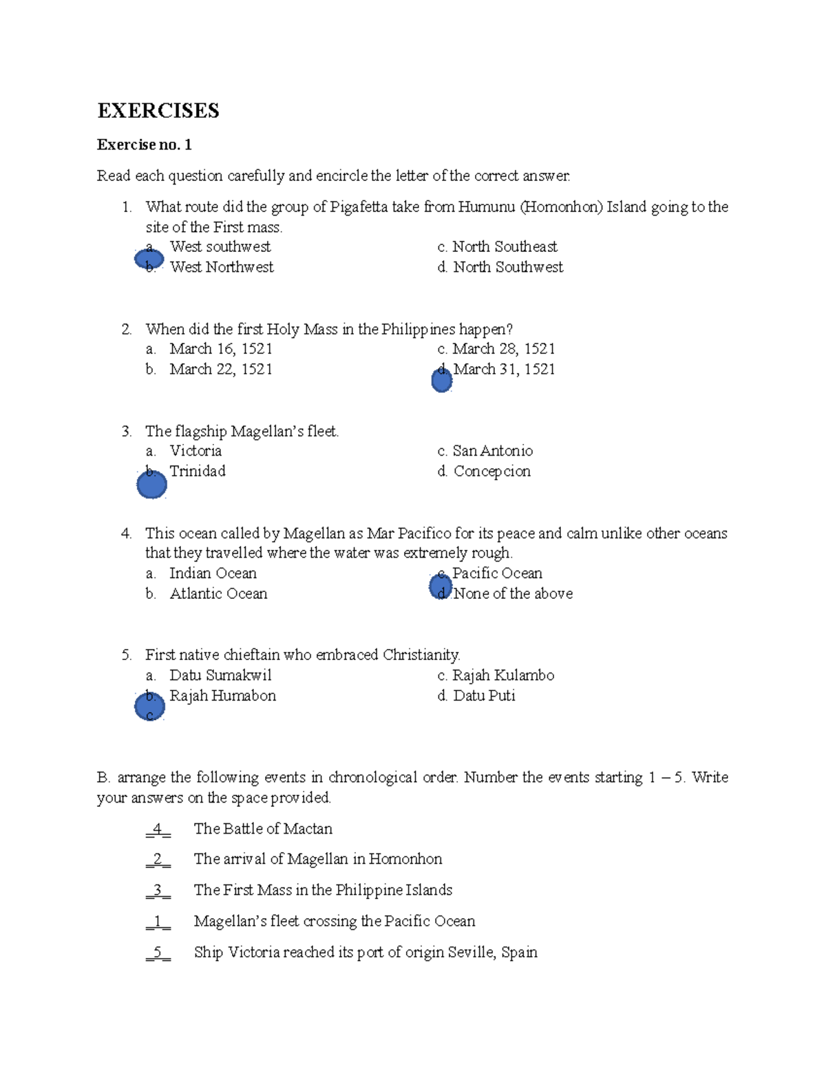 Exercises for Chapter 3: Magellan's Expedition Insights (HIST101) - Studocu