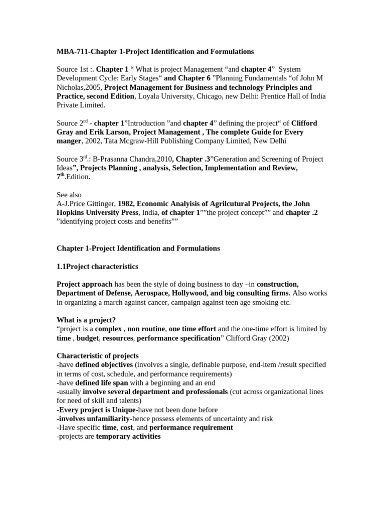 MBA711-Chapter 1-Project Identification and Formulation | PDF | Project ...