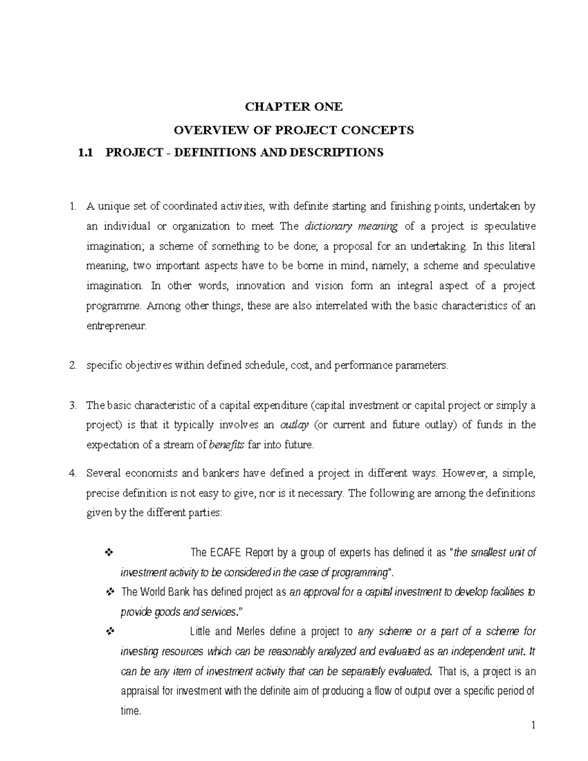 Project Management Chapter ONE - CHAPTER ONE GENERAL INTRODUCTION OF ...
