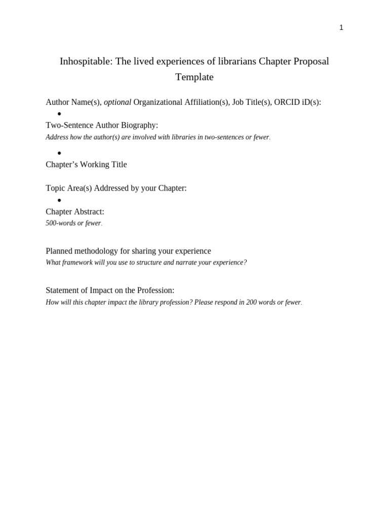 Chapter Proposal Template For Inhospitable - The Lived Experiences of ...