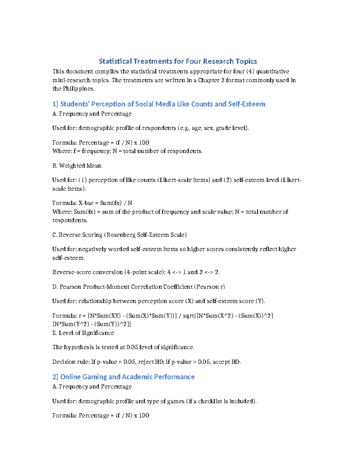 Statistical Treatments for Four Research Topics: Chapter 3 Analysis ...