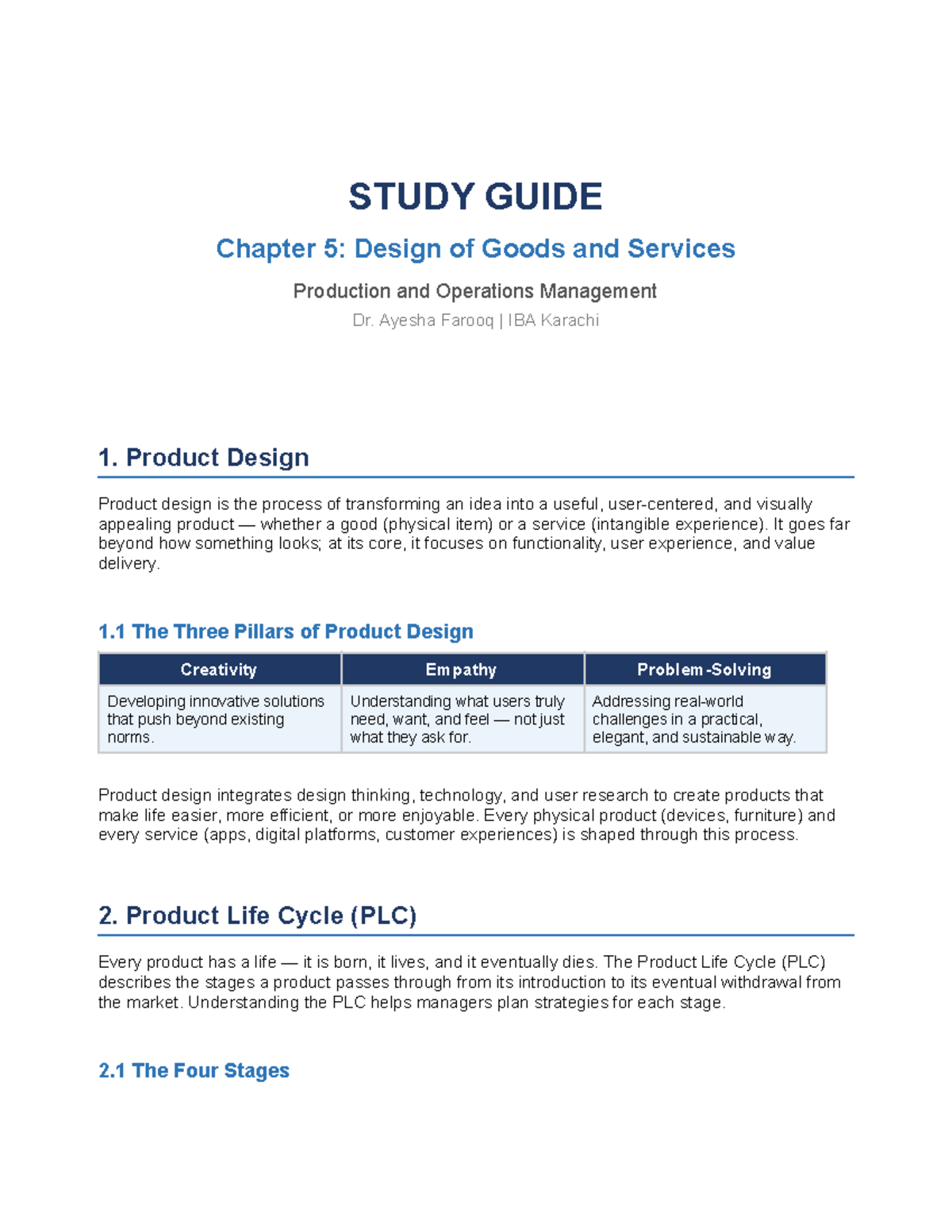 Chapter 5 Study Guide: Design of Goods & Services in POM (POM 101 ...