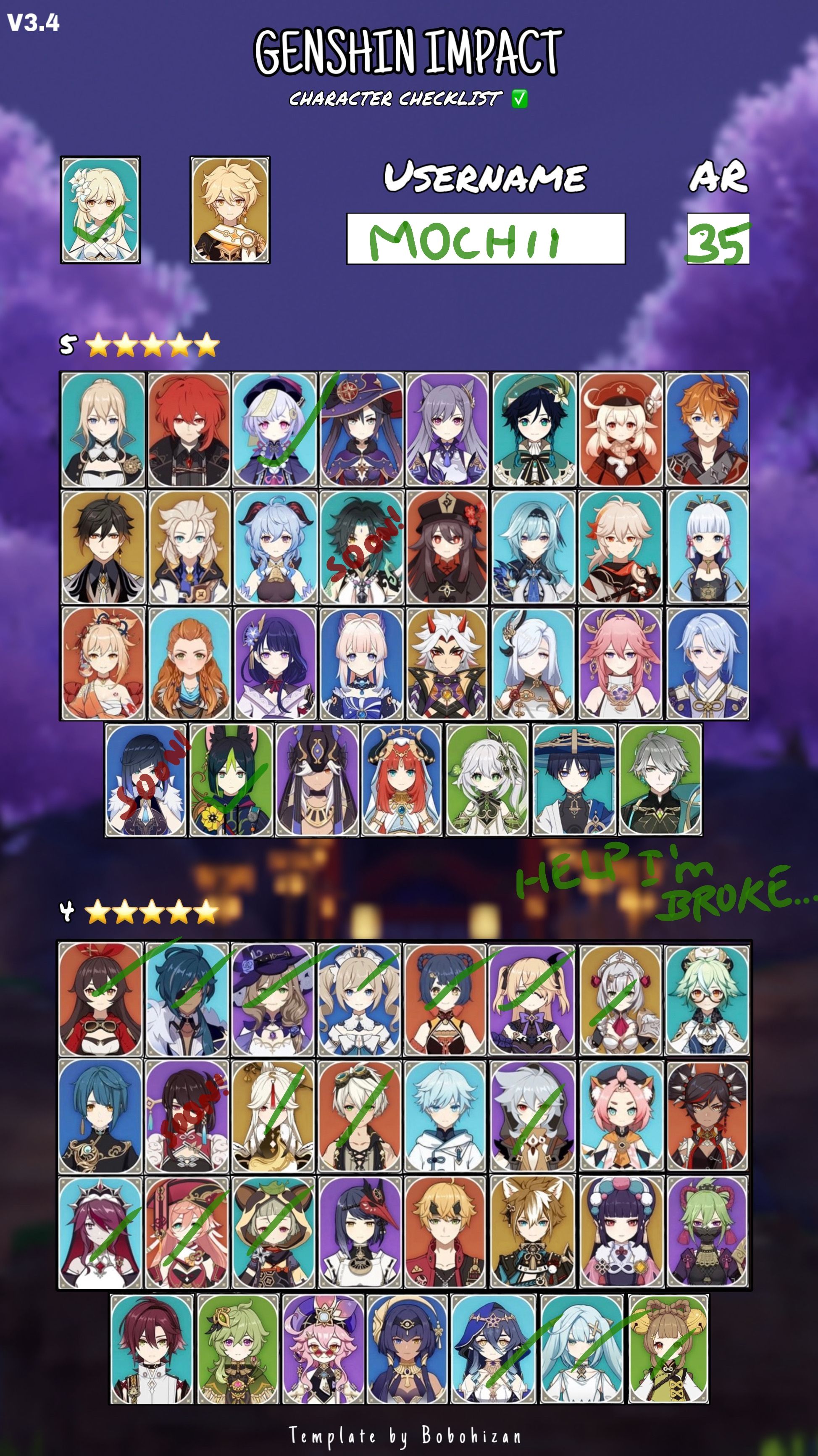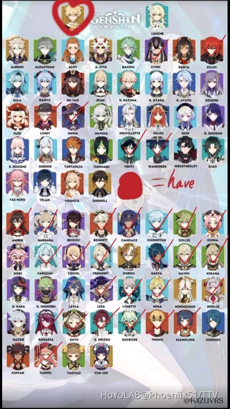 My Genshin Impact character check list (3.8) Genshin Impact | HoYoLAB