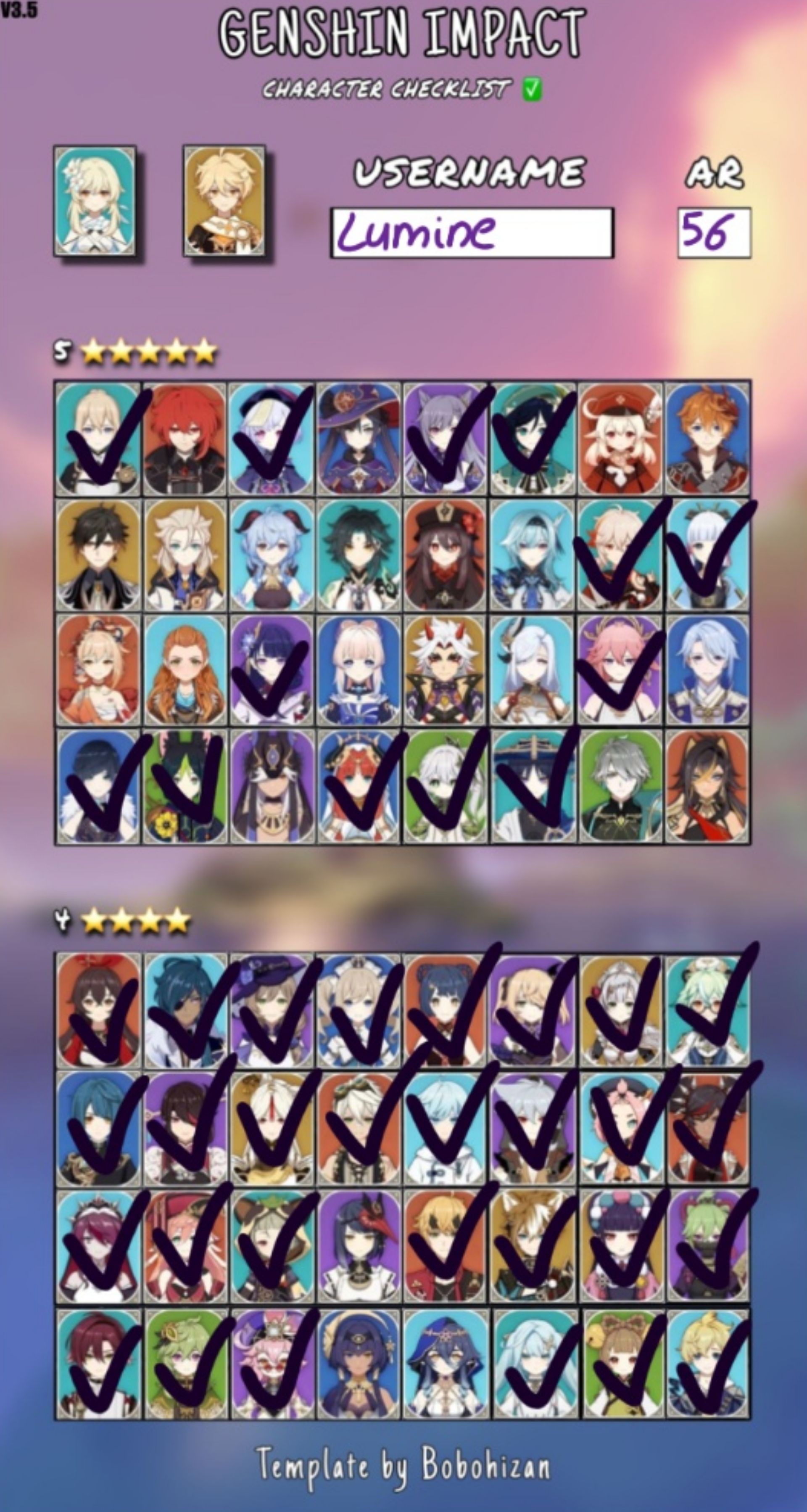 Genshin Character Checklist Template