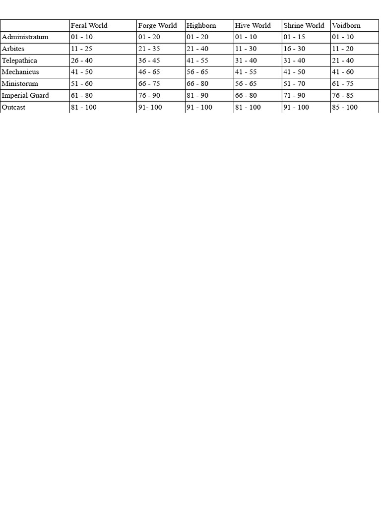Dark Heresy Second Edition - Character Creation Tables | PDF