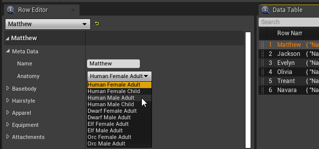 I made a character customization table for a game im making 2 ...