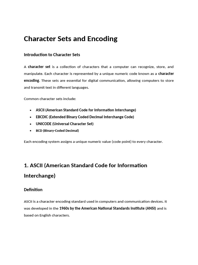 ASCII and BCD: Understanding Character Encoding Standards - Studocu