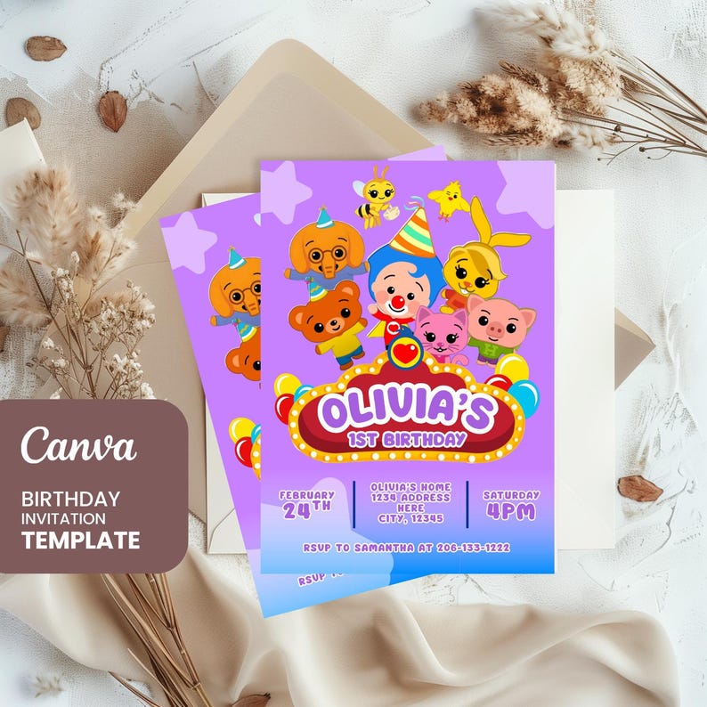 PLIM PLIM Birthday Invitation | Clown | Editable in Canva | Kids Party ...
