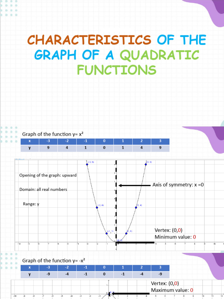 CHARACTERISTIC OF THE GRAPH OF A QUADRATIC FUNCTIONS | Download Free ...