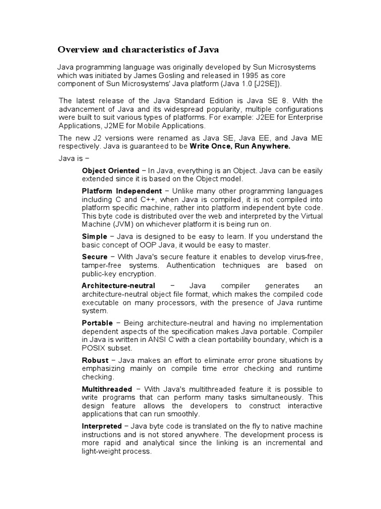 Overview and Characteristics of Java | PDF | Java (Programming Language ...