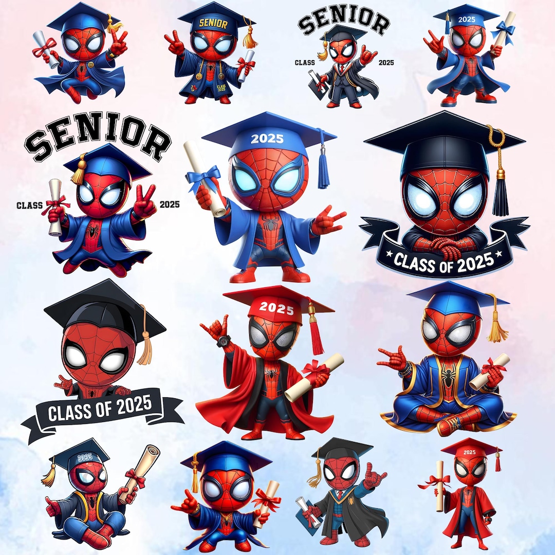 Hero Characters Graduation 2025 Png Bundle, Cute Cartoon Graduation Cap ...