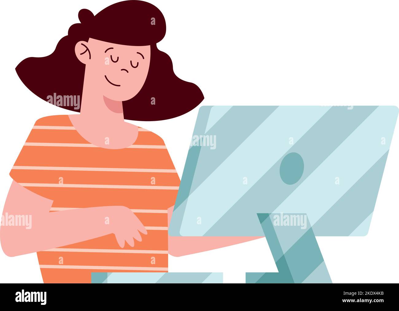 Woman Desktop Working Laptop Female Character Stock Vector (Royalty ...