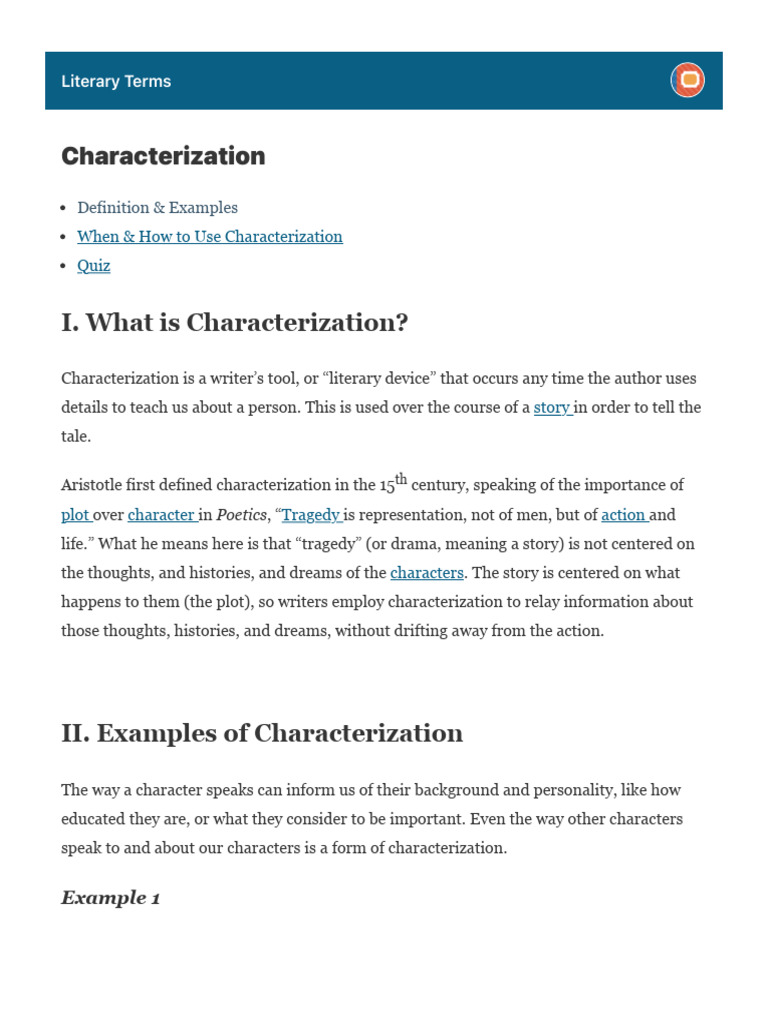Characterization - Definitions and Examples - Literary Terms | PDF