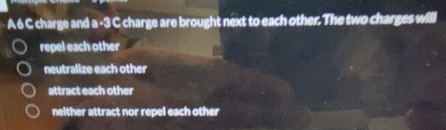 Solved: A 6 C charge and a -3 C charge are brought next to each other ...