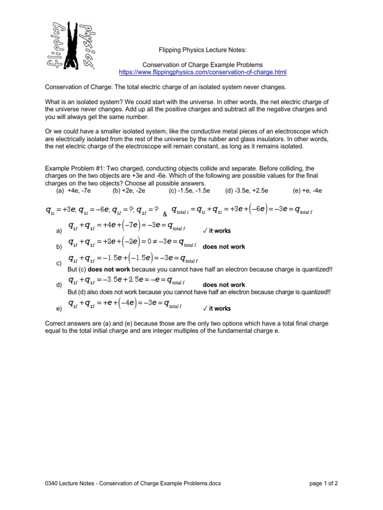 0340 Lecture Notes - Conservation of Charge Example Problems | PDF ...