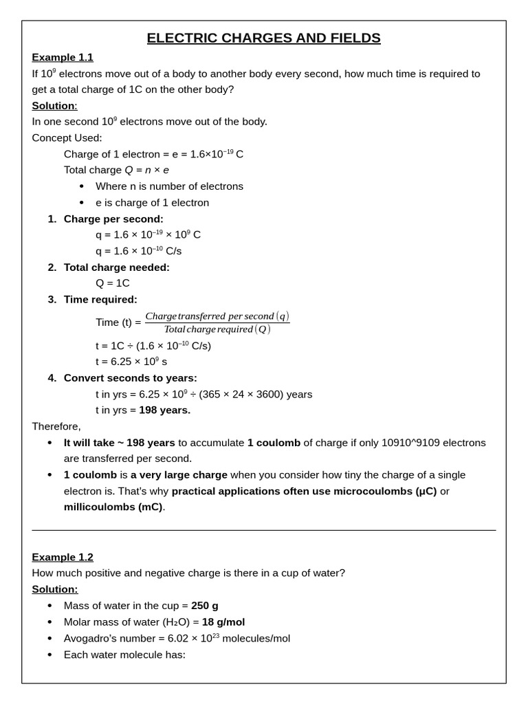 Electric Charges and Field Notes and Animation Video for Explaination ...