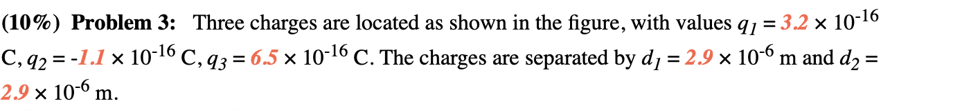 Solved (10\%) Problem 3: Three charges are located as shown | Chegg.com
