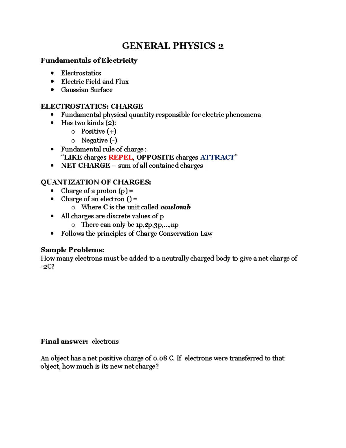 Lesson 1: Understanding Electric Charge in Electricity Concepts - Studocu